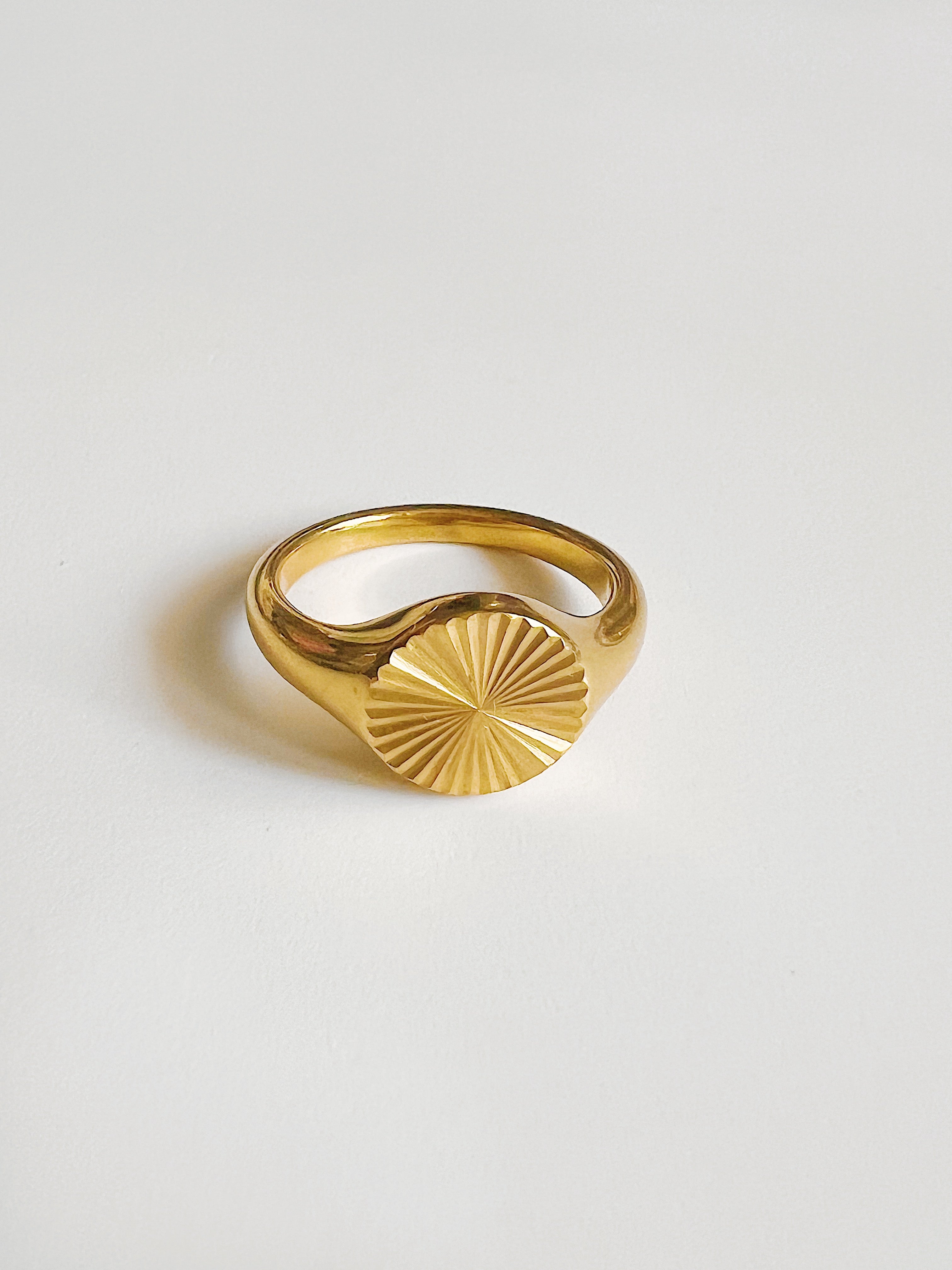 Crafted with durable stainless steel and available in both gold plated or steel color options, the Sunburst Ring balances modern style with casual versatility.